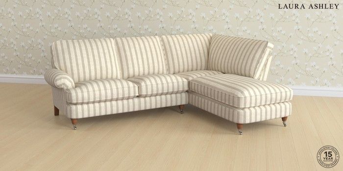 6.12.1 Buy Beaumaris by Laura Ashley Medium Sofa Chaise - Right Hand Kinsham Stripe Natural Low Chrome Castor - Teak from the Next UK online shop Click here to use our accessible website