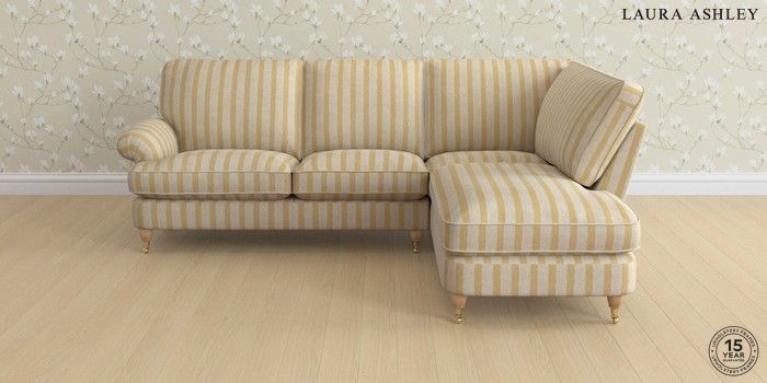 7.0.3 Buy Beaumaris by Laura Ashley Medium Sofa Chaise - Right Hand Kinsham Stripe Ochre Yellow Low Brass Castor - Light Oak from the Next UK online shop Click here to use our accessible website