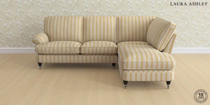 7.0.3 Buy Beaumaris by Laura Ashley Medium Sofa Chaise - Right Hand Kinsham Stripe Ochre Yellow Low Chrome Castor - Black from the Next UK online shop Click here to use our accessible website