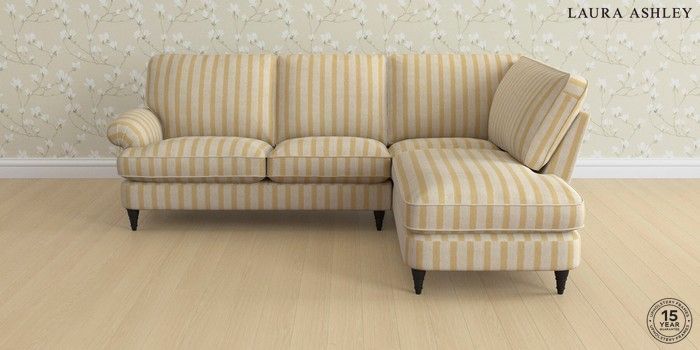 7.0.3 Buy Beaumaris by Laura Ashley Medium Sofa Chaise - Right Hand Kinsham Stripe Ochre Yellow Low Turned - Black from the Next UK online shop Click here to use our accessible website