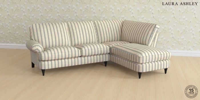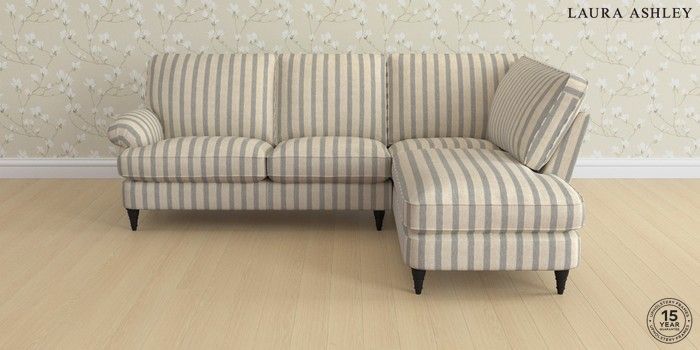 6.12.1 Buy Beaumaris by Laura Ashley Medium Sofa Chaise - Right Hand Kinsham Stripe Seaspray Blue Low Turned - Black from the Next UK online shop Click here to use our accessible website