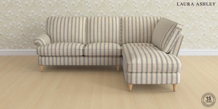 6.12.1 Buy Beaumaris by Laura Ashley Medium Sofa Chaise - Right Hand Kinsham Stripe Seaspray Blue Low Turned - Light Oak from the Next UK online shop Click here to use our accessible website