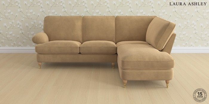 6.12.1 Buy Beaumaris by Laura Ashley Medium Sofa Chaise - Right Hand Lundar Chenille Caramel Natural Low Brass Castor - Light Oak from the Next UK online shop Click here to use our accessible website