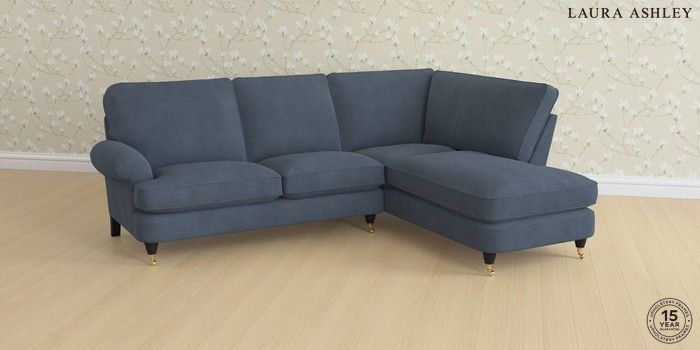 6.12.1 Buy Beaumaris by Laura Ashley Medium Sofa Chaise - Right Hand Lundar Chenille Navy Blue Low Brass Castor - Black from the Next UK online shop Click here to use our accessible website