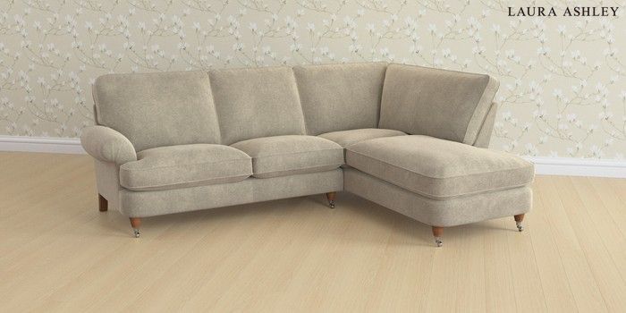 6.12.13 Buy Beaumaris by Laura Ashley Medium Sofa Chaise - Right Hand Lundar Chenille Truffle Natural Low Chrome Castor - Teak from the Next UK online shop Click here to use our accessible website
