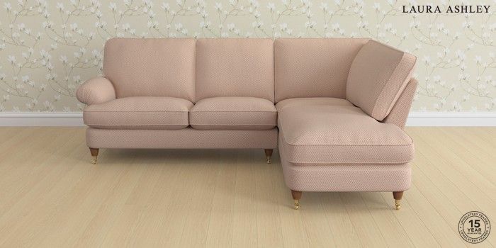 6.12.1 Buy Beaumaris by Laura Ashley Medium Sofa Chaise - Right Hand Melbreak Geo Chalk Pink Low Brass Castor - Teak from the Next UK online shop Click here to use our accessible website