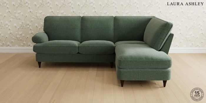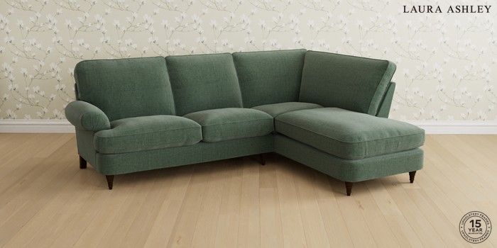 6.12.1 Buy Beaumaris by Laura Ashley Medium Sofa Chaise - Right Hand Nantmor Fern Green Low Turned - Chestnut from the Next UK online shop Click here to use our accessible website