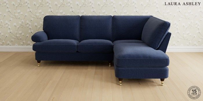 6.12.1 Buy Beaumaris by Laura Ashley Medium Sofa Chaise - Right Hand Nantmor Midnight Navy Low Brass Castor - Chestnut from the Next UK online shop Click here to use our accessible website