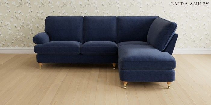 6.12.1 Buy Beaumaris by Laura Ashley Medium Sofa Chaise - Right Hand Nantmor Midnight Navy Low Brass Castor - Light Oak from the Next UK online shop Click here to use our accessible website