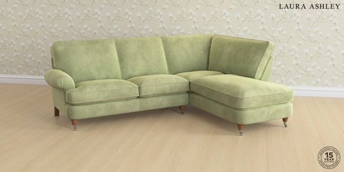 6.12.1 Buy Beaumaris by Laura Ashley Medium Sofa Chaise - Right Hand Orla Pale Hedgerow Green Low Chrome Castor - Teak from the Next UK online shop Click here to use our accessible website