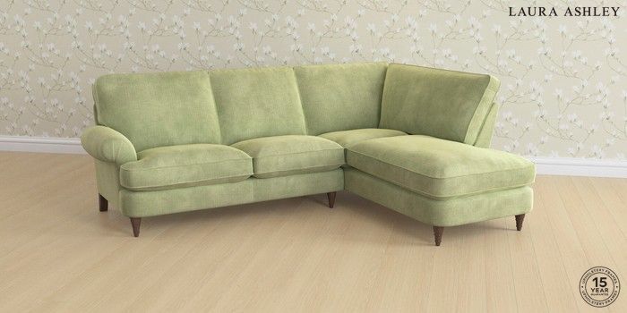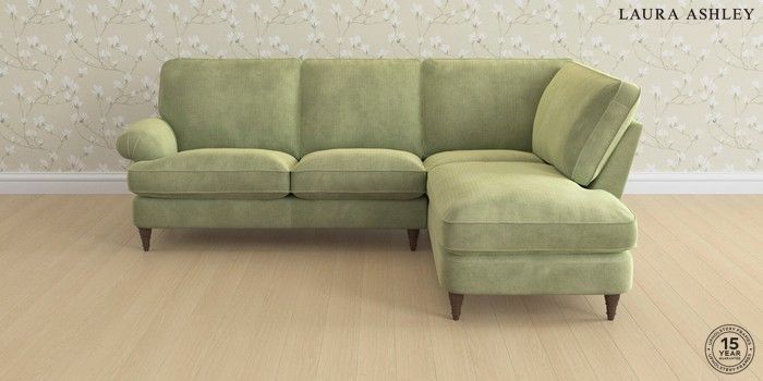 6.12.1 Buy Beaumaris by Laura Ashley Medium Sofa Chaise - Right Hand Orla Pale Hedgerow Green Low Turned - Chestnut from the Next UK online shop Click here to use our accessible website