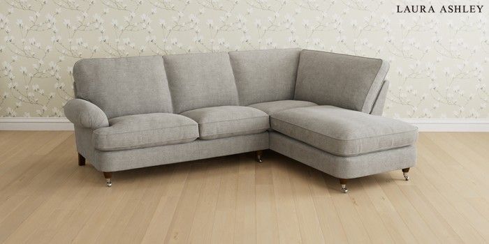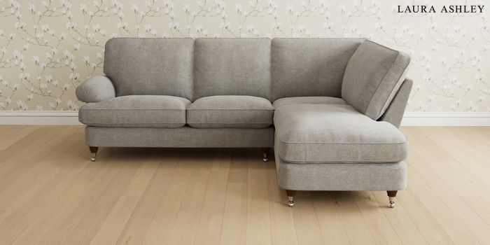 6.12.1 Buy Beaumaris by Laura Ashley Medium Sofa Chaise - Right Hand Orla Pale Steel Grey Low Chrome Castor - Teak from the Next UK online shop Click here to use our accessible website