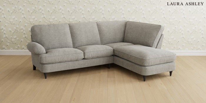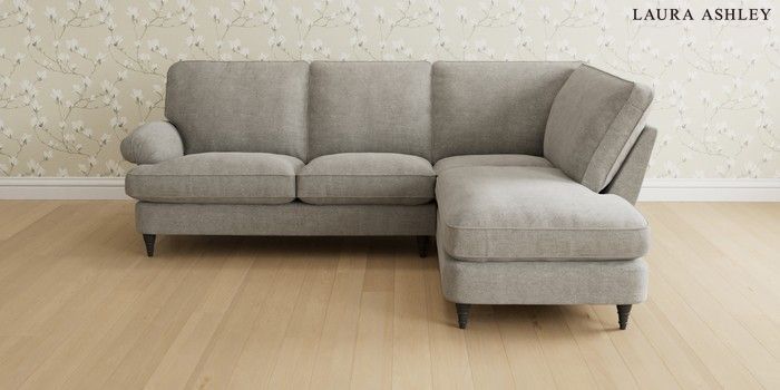 6.12.1 Buy Beaumaris by Laura Ashley Medium Sofa Chaise - Right Hand Orla Pale Steel Grey Low Turned - Black from the Next UK online shop Click here to use our accessible website
