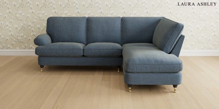 6.12.1 Buy Beaumaris by Laura Ashley Medium Sofa Chaise - Right Hand Orla Seaspray Blue Low Brass Castor - Black from the Next UK online shop Click here to use our accessible website