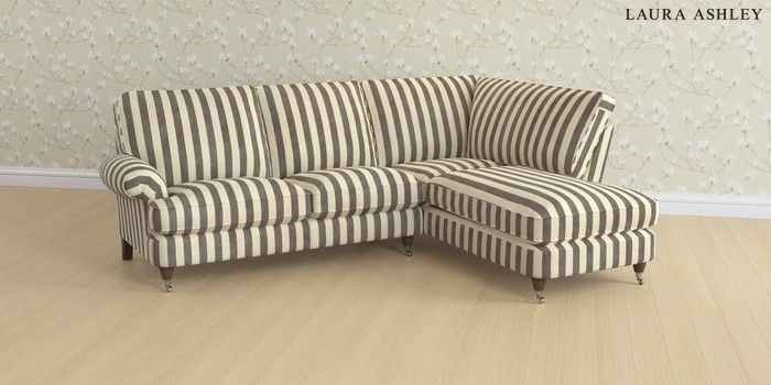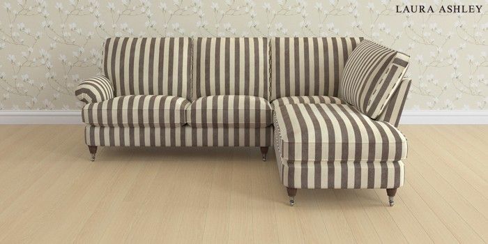 6.12.13 Buy Beaumaris by Laura Ashley Medium Sofa Chaise - Right Hand Orla Stripe Dark Truffle Natural Low Chrome Castor - Chestnut from the Next UK online shop Click here to use our accessible website