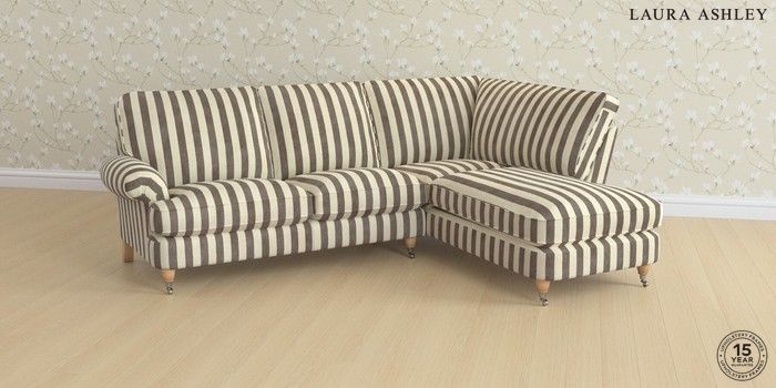 6.12.13 Buy Beaumaris by Laura Ashley Medium Sofa Chaise - Right Hand Orla Stripe Dark Truffle Natural Low Chrome Castor - Light Oak from the Next UK online shop Click here to use our accessible website