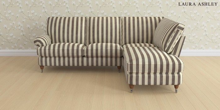 6.12.13 Buy Beaumaris by Laura Ashley Medium Sofa Chaise - Right Hand Orla Stripe Dark Truffle Natural Low Chrome Castor - Teak from the Next UK online shop Click here to use our accessible website
