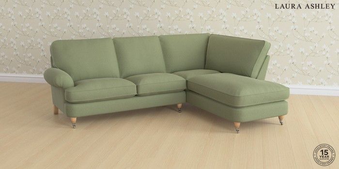 6.12.1 Buy Beaumaris by Laura Ashley Medium Sofa Chaise - Right Hand Peyton Hedgerow Green Low Chrome Castor - Light Oak from the Next UK online shop Click here to use our accessible website