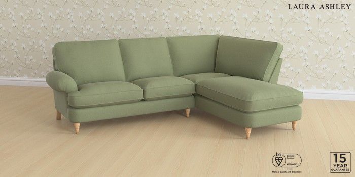 6.12.1 Buy Beaumaris by Laura Ashley Medium Sofa Chaise - Right Hand Peyton Hedgerow Green Low Turned - Light Oak from the Next UK online shop Click here to use our accessible website