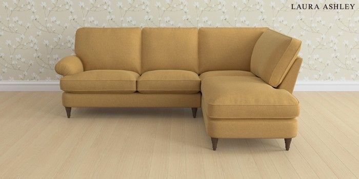 6.12.1 Buy Beaumaris by Laura Ashley Medium Sofa Chaise - Right Hand Peyton Ochre Yellow Low Turned - Chestnut from the Next UK online shop Click here to use our accessible website