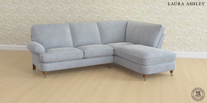 6.12.1 Buy Beaumaris by Laura Ashley Medium Sofa Chaise - Right Hand Peyton Powder Blue Low Chrome Castor - Teak from the Next UK online shop Click here to use our accessible website