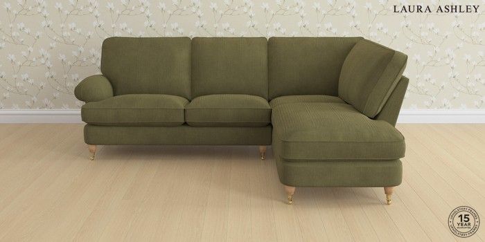 6.12.1 Buy Beaumaris by Laura Ashley Medium Sofa Chaise - Right Hand Sinclair Cord Ivy Green Low Brass Castor - Light Oak from the Next UK online shop Click here to use our accessible website