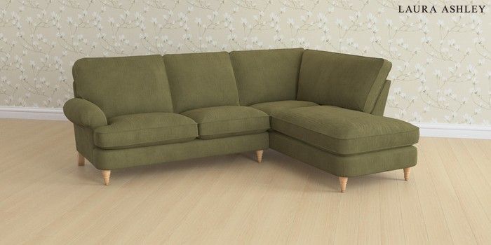 6.12.1 Buy Beaumaris by Laura Ashley Medium Sofa Chaise - Right Hand Sinclair Cord Ivy Green Low Turned - Light Oak from the Next UK online shop Click here to use our accessible website