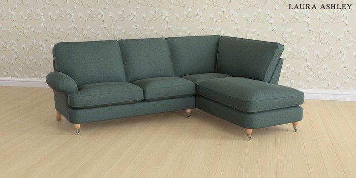 6.12.1 Buy Beaumaris by Laura Ashley Medium Sofa Chaise - Right Hand Wooton Forest Green Low Chrome Castor - Light Oak from the Next UK online shop Click here to use our accessible website