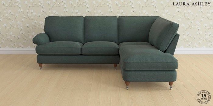 6.12.1 Buy Beaumaris by Laura Ashley Medium Sofa Chaise - Right Hand Wooton Forest Green Low Chrome Castor - Teak from the Next UK online shop Click here to use our accessible website