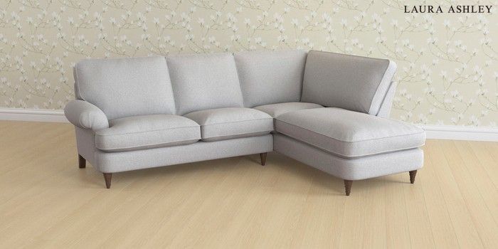 6.12.1 Buy Beaumaris by Laura Ashley Medium Sofa Chaise - Right Hand Wooton Pale Steel Grey Low Turned - Chestnut from the Next UK online shop Click here to use our accessible website