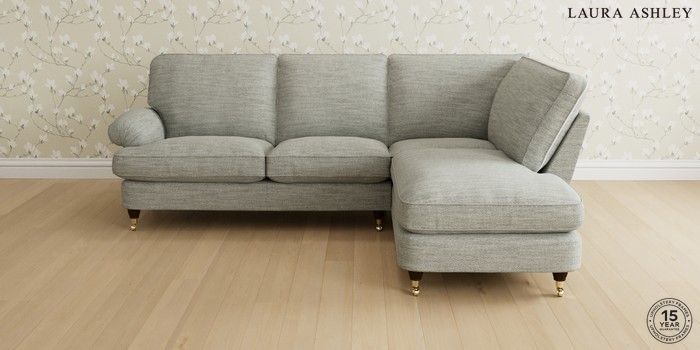 6.12.1 Buy Beaumaris by Laura Ashley Medium Sofa Chaise - Right Hand Harley Dove Grey Low Brass Castor - Chestnut from the Next UK online shop Click here to use our accessible website