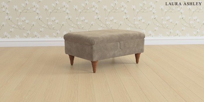 6.12.1 Buy Beaumaris by Laura Ashley Storage Footstool Alwyn Velvet Truffle Natural Low Turned - Teak from the Next UK online shop Click here to use our accessible website