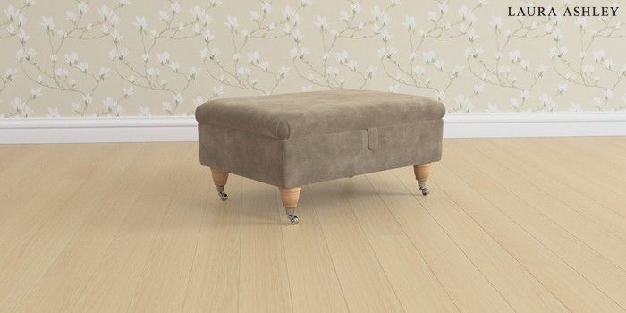6.12.1 Buy Beaumaris by Laura Ashley Storage Footstool Alwyn Velvet Truffle Natural Low Chrome Castor - Light Oak from the Next UK online shop Click here to use our accessible website