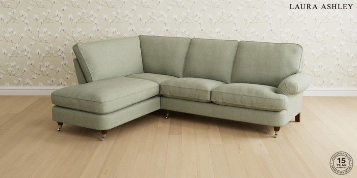 6.12.1 Buy Beaumaris by Laura Ashley Medium Sofa Chaise - Left Hand Anneliese Sage Green Low Chrome Castor - Teak from the Next UK online shop Click here to use our accessible website