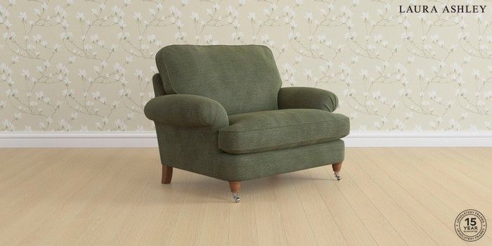 6.12.1 Buy Beaumaris by Laura Ashley Snuggle Edwin Chenille Hedgerow Green Low Chrome Castor - Teak from the Next UK online shop Click here to use our accessible website