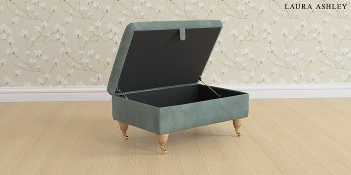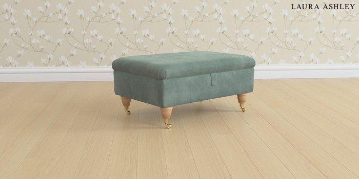 6.12.1 Buy Beaumaris by Laura Ashley Storage Footstool Ailsworth Fern Green Low Brass Castor - Light Oak from the Next UK online shop Click here to use our accessible website