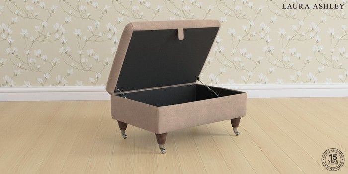 6.12.1 Buy Beaumaris by Laura Ashley Storage Footstool Ailsworth Mink Natural Low Chrome Castor - Chestnut from the Next UK online shop Click here to use our accessible website