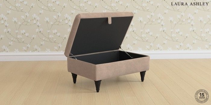 6.12.1 Buy Beaumaris by Laura Ashley Storage Footstool Ailsworth Mink Natural Low Turned - Black from the Next UK online shop Click here to use our accessible website