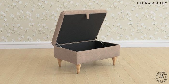 6.12.1 Buy Beaumaris by Laura Ashley Storage Footstool Ailsworth Mink Natural Low Turned - Light Oak from the Next UK online shop Click here to use our accessible website