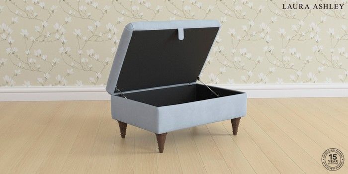 6.12.1 Buy Beaumaris by Laura Ashley Storage Footstool Ailsworth Newport Blue Low Turned - Chestnut from the Next UK online shop Click here to use our accessible website