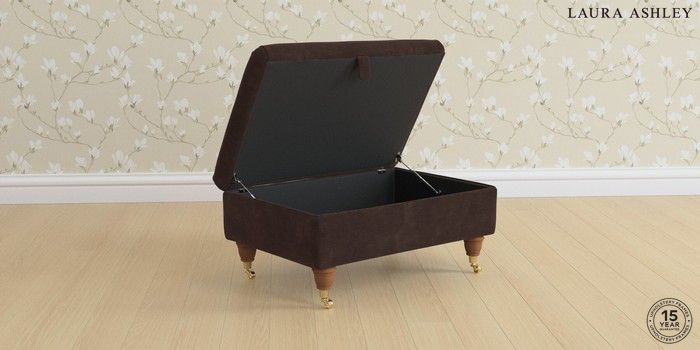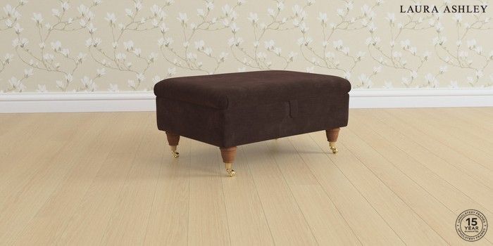 6.12.13 Buy Beaumaris by Laura Ashley Storage Footstool Alwyn Velvet Chocolate Brown Low Brass Castor - Teak from the Next UK online shop Click here to use our accessible website