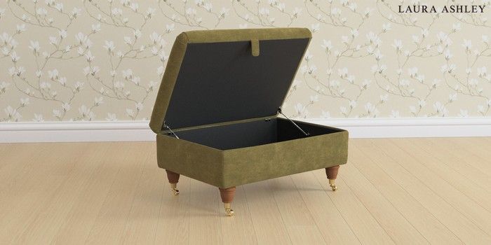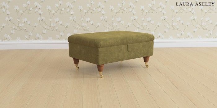 6.12.13 Buy Beaumaris by Laura Ashley Storage Footstool Alwyn Velvet Olive Green Low Brass Castor - Teak from the Next UK online shop Click here to use our accessible website