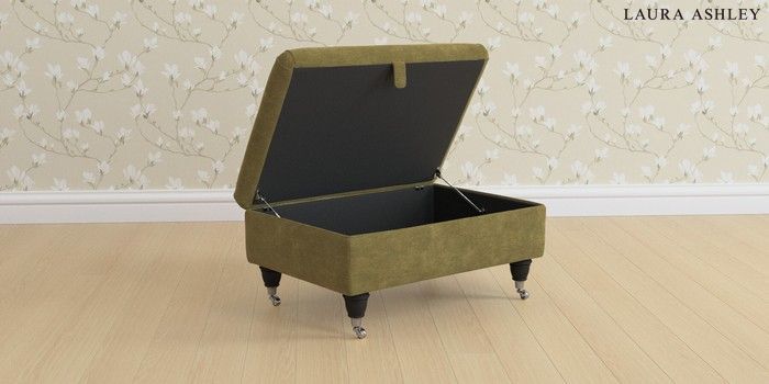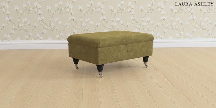 6.12.1 Buy Beaumaris by Laura Ashley Storage Footstool Alwyn Velvet Olive Green Low Chrome Castor - Black from the Next UK online shop Click here to use our accessible website