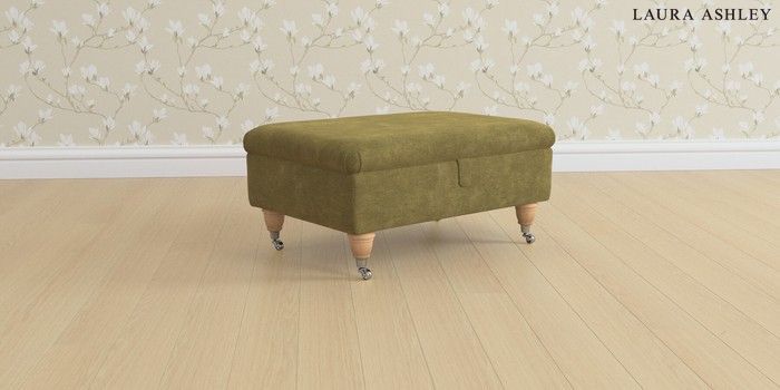 6.12.1 Buy Beaumaris by Laura Ashley Storage Footstool Alwyn Velvet Olive Green Low Chrome Castor - Light Oak from the Next UK online shop Click here to use our accessible website