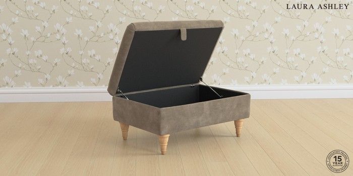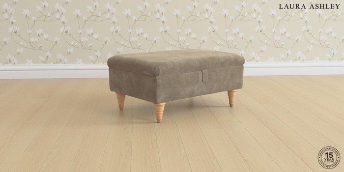 6.12.1 Buy Beaumaris by Laura Ashley Storage Footstool Alwyn Velvet Truffle Natural Low Turned - Light Oak from the Next UK online shop Click here to use our accessible website