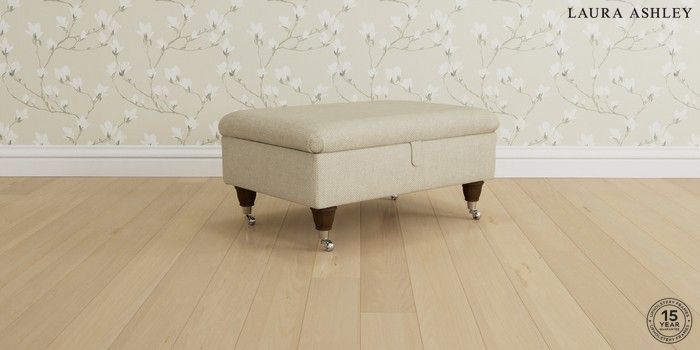 6.12.1 Buy Beaumaris by Laura Ashley Storage Footstool Anneliese Natural Low Chrome Castor - Chestnut from the Next UK online shop Click here to use our accessible website