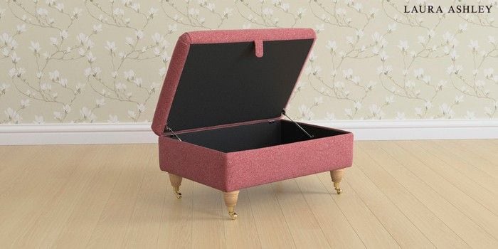 6.12.1 Buy Beaumaris by Laura Ashley Storage Footstool Anneliese Rosewood Red Low Brass Castor - Light Oak from the Next UK online shop Click here to use our accessible website