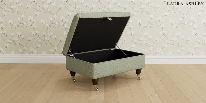 6.12.1 Buy Beaumaris by Laura Ashley Storage Footstool Anneliese Sage Green Low Chrome Castor - Chestnut from the Next UK online shop Click here to use our accessible website