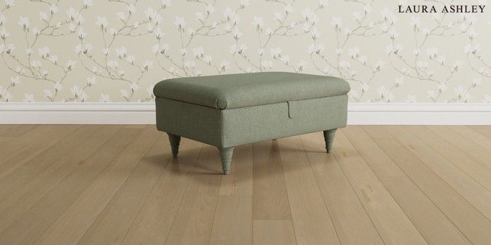 6.12.1 Buy Beaumaris by Laura Ashley Storage Footstool Anneliese Sage Green Low Turned - Chestnut from the Next UK online shop Click here to use our accessible website
