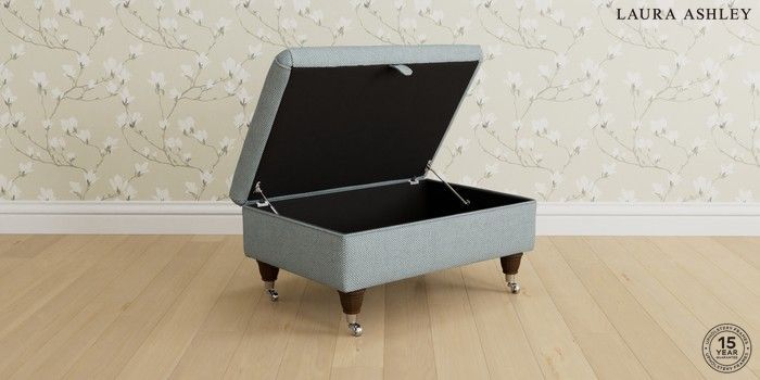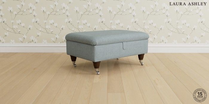 6.12.13 Buy Beaumaris by Laura Ashley Storage Footstool Anneliese Seaspray Blue Low Chrome Castor - Chestnut from the Next UK online shop Click here to use our accessible website